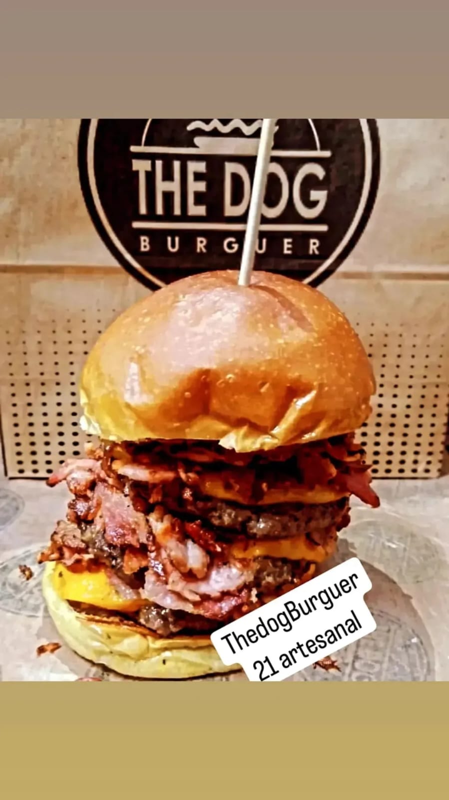 TRES fatias de pão brioche selados na chapa, DOIS BIFES ARTESANAIS DE 160g cada, fatias de bacon, queijo prato, ovo, cheddar, um molho gourmet a escolher